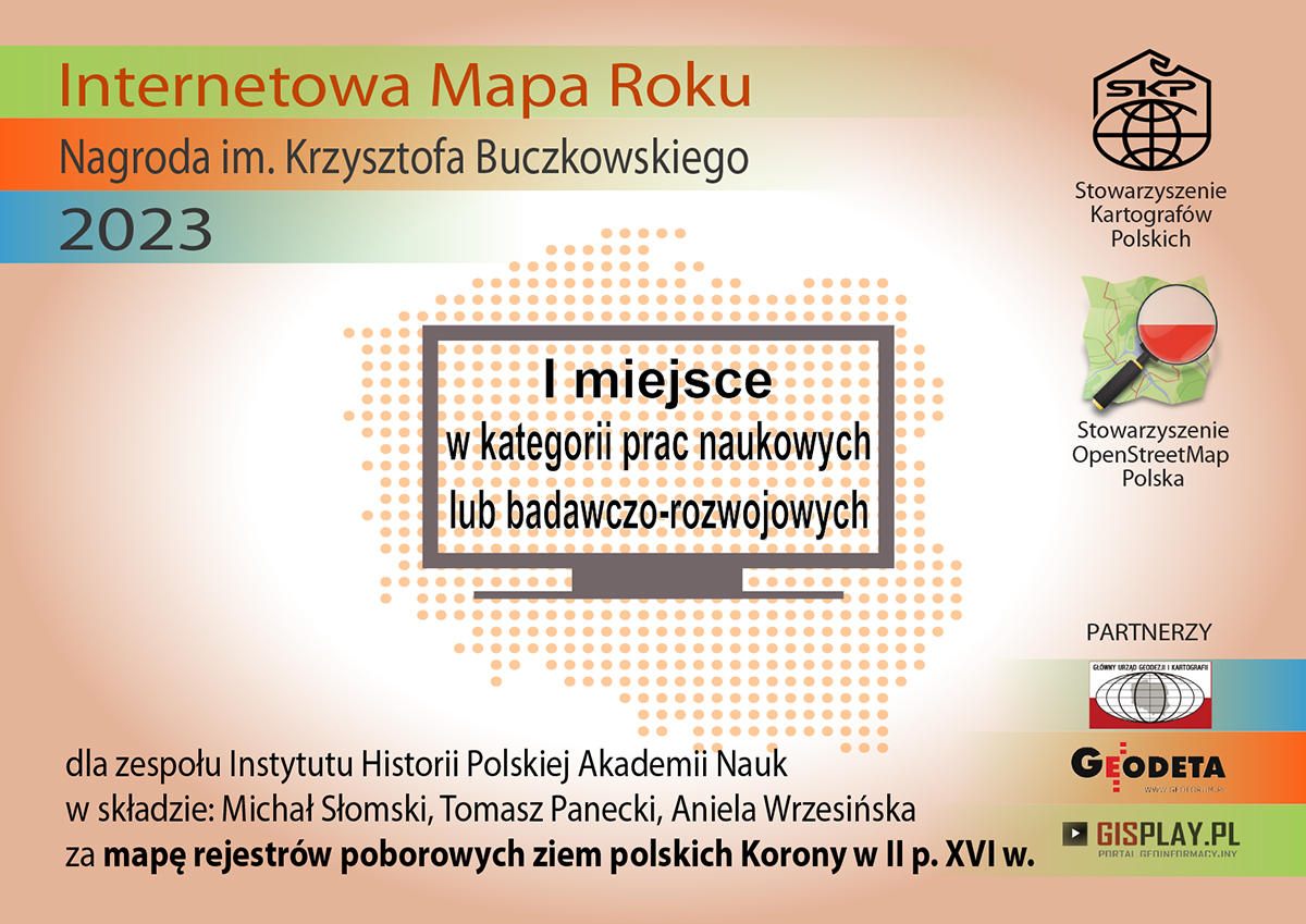 Podczas I Kongresu Geoinformatycznego wręczono nagrodę im. Krzysztofa Buczkowskiego na Internetową Mapę Roku 2023. Nagrodę tę otrzymała cyfrowa mapa „Rejestry poborowe ziem polskich Korony w drugiej połowie XVI w.”, która jest jednym z […]