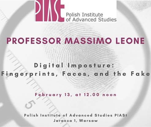 Serdecznie zapraszamy na wykład w Polskim Instytucie Studiów Zaawansowanych PIASt: Digital Imposture: Fingerprints, Faces, and the Fake, który wygłosi prof. Massimo Leone z Włoch. Wykład odbędzie się 13 lutego o godz. 12.00 […]
