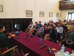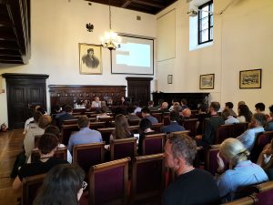 Drugiego dnia kongresu, 29 września 2023 r., po godz. 16:00 rozpoczęły się wydarzenia plenarne w Sali Joachima Lelewela IH PAN. Przybyłych gości powitał Dyrektor IH PAN, prof. dr hab. Maciej Janowski, który krótko przedstawił dzieje Instytutu oraz sylwetkę samego Lelewela podkreślając, że również na obszarze Rurytanii istnieli historycy europejskiego formatu. Kolejno, prezentację dotyczącą rozwoju historii pojęć jako nurtu badawczego w Polsce wygłosił dr hab. prof. IH PAN Adam Kożuchowski. Po nim głos zabrała dr Ewa Wróblewska-Trochimiuk z IS PAN. W swym wystąpieniu przedstawiła przebieg prac nad 10 tomami „Leksykonu idei wędrownych na słowiańskich Bałkanach”. Następnie, dr E. Wróblewska-Trochimiuk prowadziła panel pt. „Modern Humanities and the Question of Scientific Prejudices”, w którym udział wzięli dr hab. prof. IS PAN Grażyna Szwat-Gyłybow, prof. dr hab. Ewa Domańska (UAM), dr Ewelina Drzewiecka (IS PAN) oraz Prof. Raymond Detrez (Uniwersytet w Gandawie).