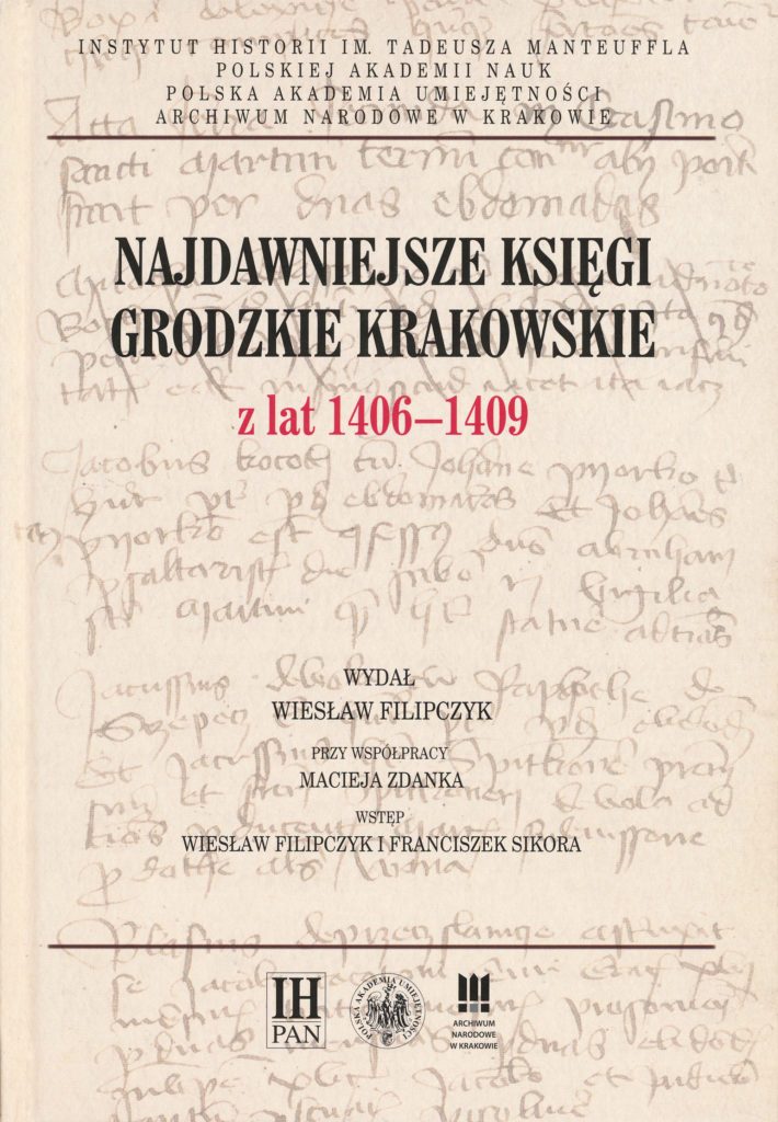 Najdawniejsze księgi grodzkie krakowskie z lat 1406–1409, wydał Wiesław Filipczyk, przy współpracy Macieja Zdanka, wstęp Wiesław Filipczyk i Franciszek Sikora, koed. z PAU i ANK, Warszawa–Kraków 2019, B5, ss. 569, oprawa twarda, ISBN 978-83-65880-47-5 (Starodawne prawa polskiego pomniki, seria II: Pomniki prawa polskiego, dział I: Prawo ziemskie, t. 4)